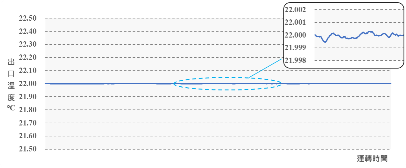 Note 1: 若操作超出規定的流量範圍,可能導致性能下降、控制精度受影響,並產生噪音。 Note 2: 測試條件:設定溫度:25°C/PCW(水冷系統)溫度:18°C/PCW 流量:10 L/min/環境溫度:25°C Note 3: 適用範圍:本產品具備內建循環系統,可依不同環境需求進行調整,無論高溫或低溫皆能保持穩定運作。 |
