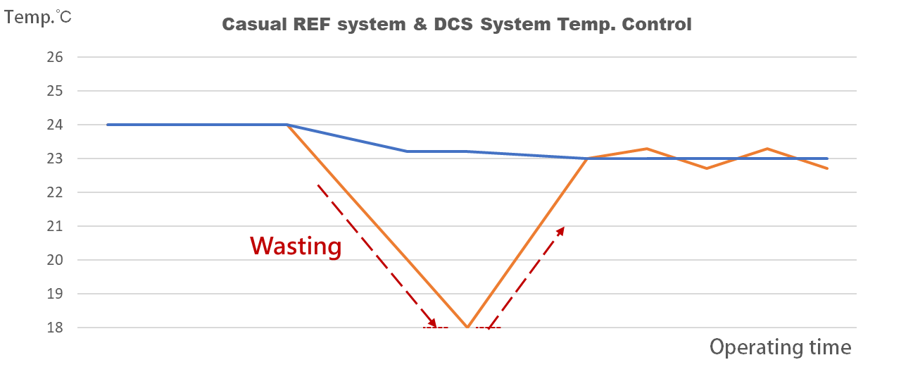 直冷式冷卻水控制機使用DCS技術,減少不必要之冷卻或加熱功率,維持液體溫度的同時,降低電力能耗。